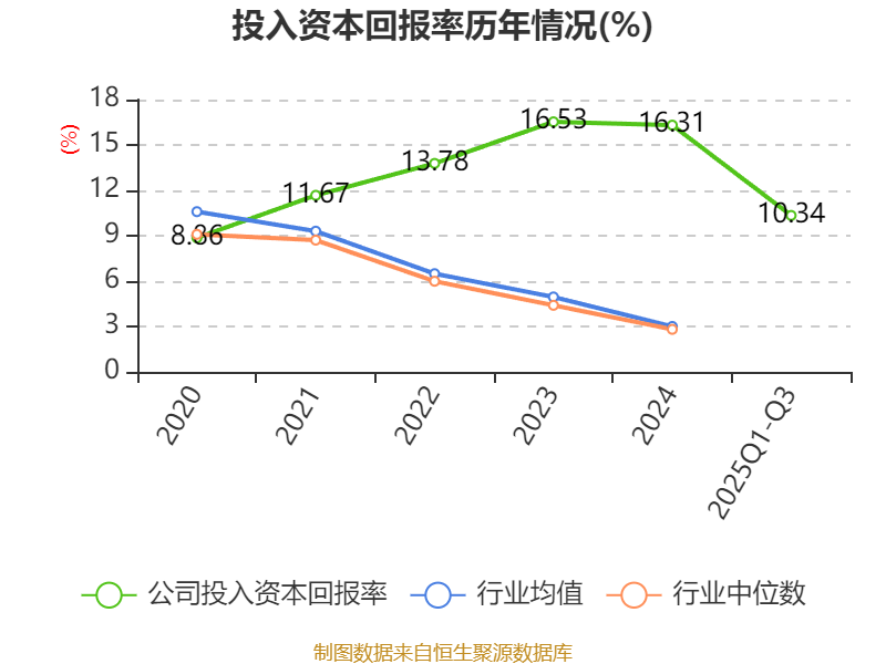盈利能力方面, 2025年前三季度公司加权平均净资产收益率为11.09%,同比下降2.86个百分点。公司2025年前三季度投入资本回报率为10.34%,较上年同期下降2.74个百分点。