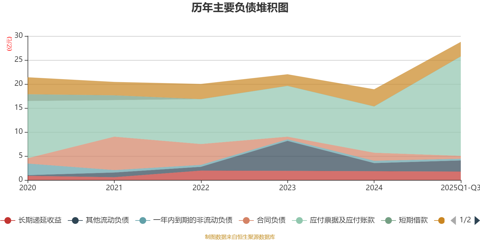 负债重大变化方面,截至2025年三季度末,公司应付票据及应付账款较上年末增加115.01%,占公司总资产比重上升9个百分点;合同负债较上年末减少64.74%,占公司总资产比重下降1.23个百分点;其他应付款(含利息和股利)较上年末减少42.91%,占公司总资产比重下降0.43个百分点;其他流动负债较上年末增加37.4%,占公司总资产比重上升0.36个百分点。