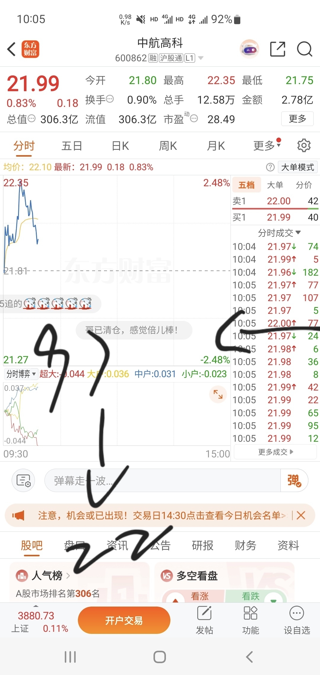 从97到22,直接跳过98这种操作绝对不会是人为的!量化进来了,大家直接做空他!