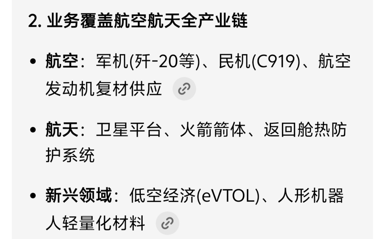 $中航高科(SH600862)$ #投资干货# 中航高科是二市被绝对低估的真正具备航空航天,军工战斗机,民用大飞机,低空经济,并且是供货特斯拉优必选小米人形机器人骨架核心供应商,可以在上市公司相关资料查询。