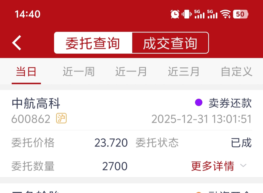 $中航高科(SH600862)$ 今天本来想清仓的,猪力不给机会啊!MD!先卖点,等年后再卖。。。。。。
