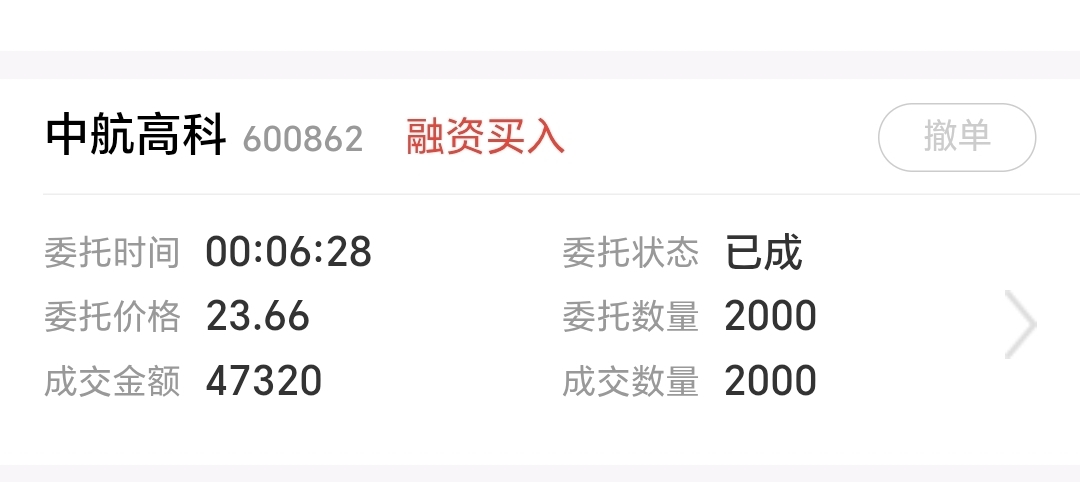 $中航高科(SH600862)$ 凌晨委托单成交了。