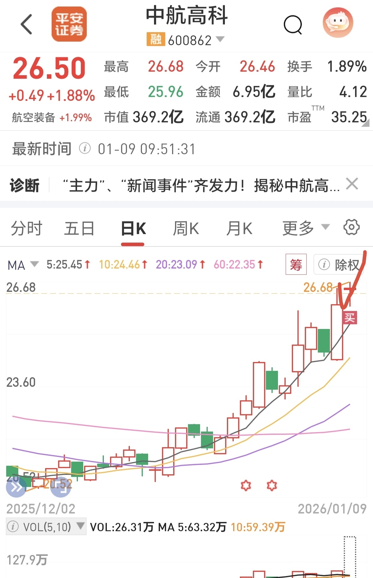 $中航高科(SH600862)$ 我来吃中段,有图为证!
