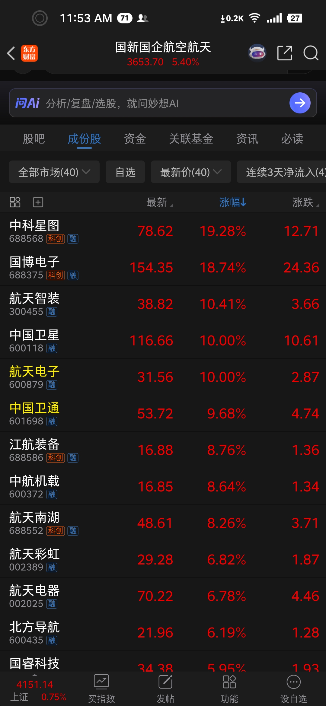 $中航高科(SH600862)$ 丢人,涨不过板块