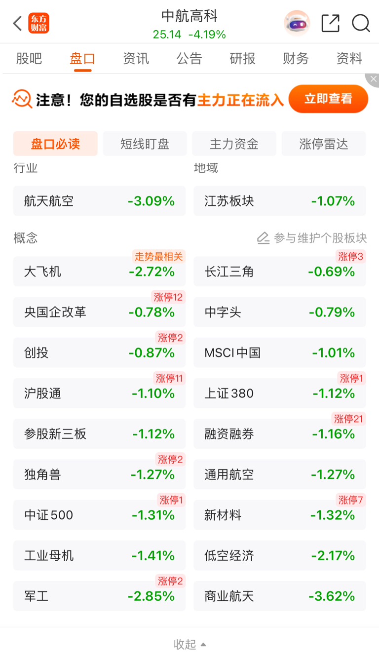 $中航高科(SH600862)$ 所属板块都是绿的