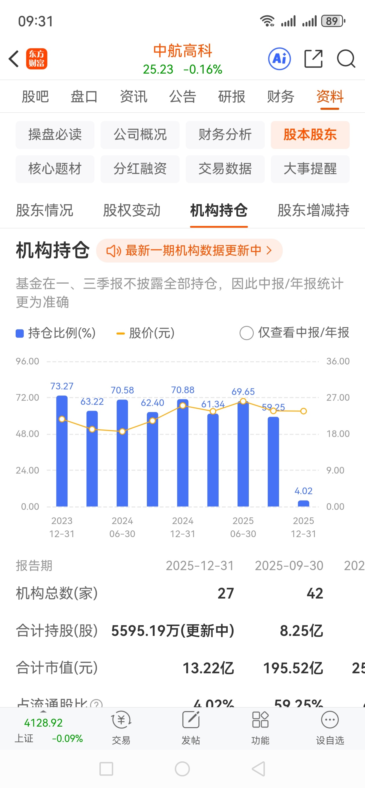$中航高科(SH600862)$ 25年四季度,机构几乎清仓了该股,这是怎么回事?