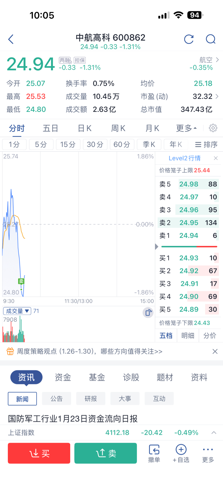 $中航高科(SH600862)$ 一卖你就拉,哈哈