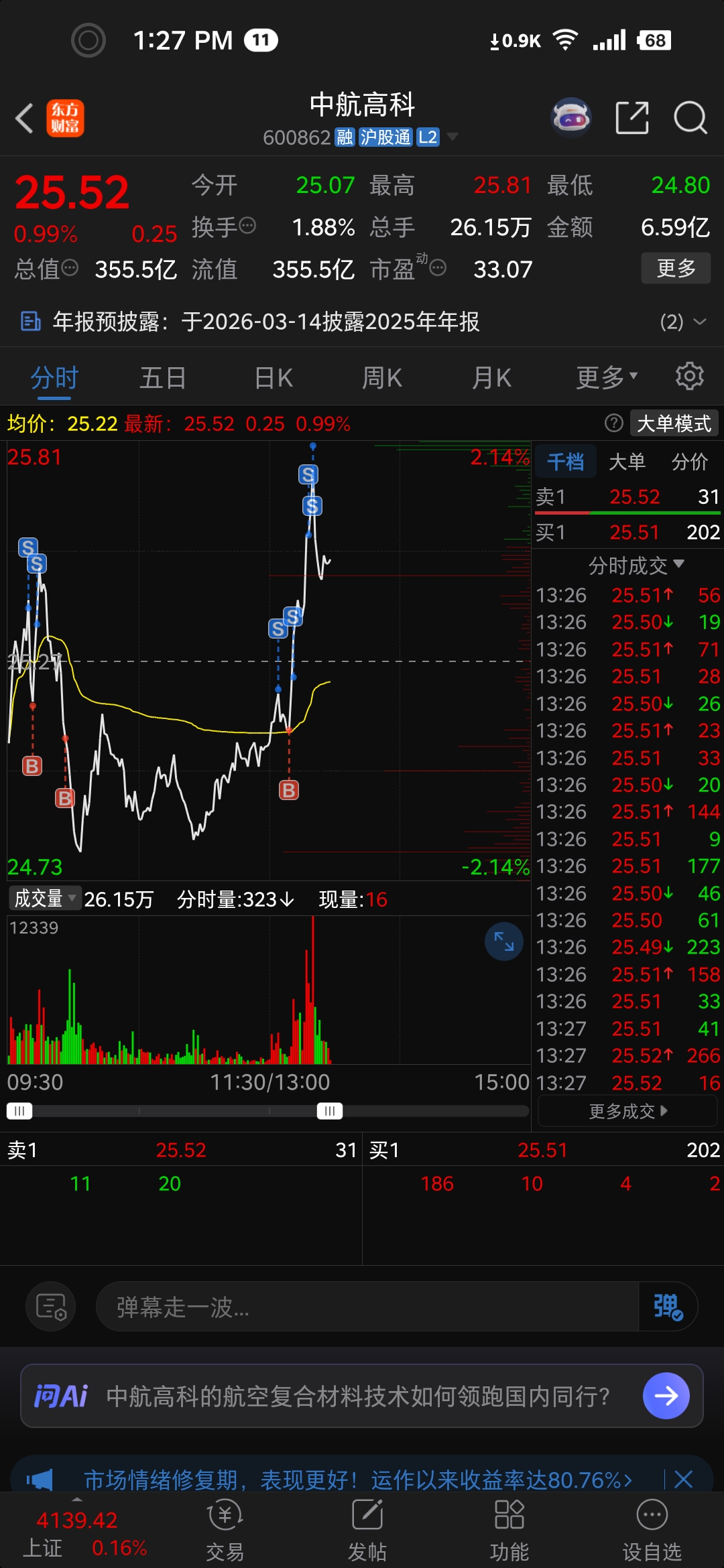 $中航高科(SH600862)$ 烂股,我把昨天加的全给你了,又有子弹了,