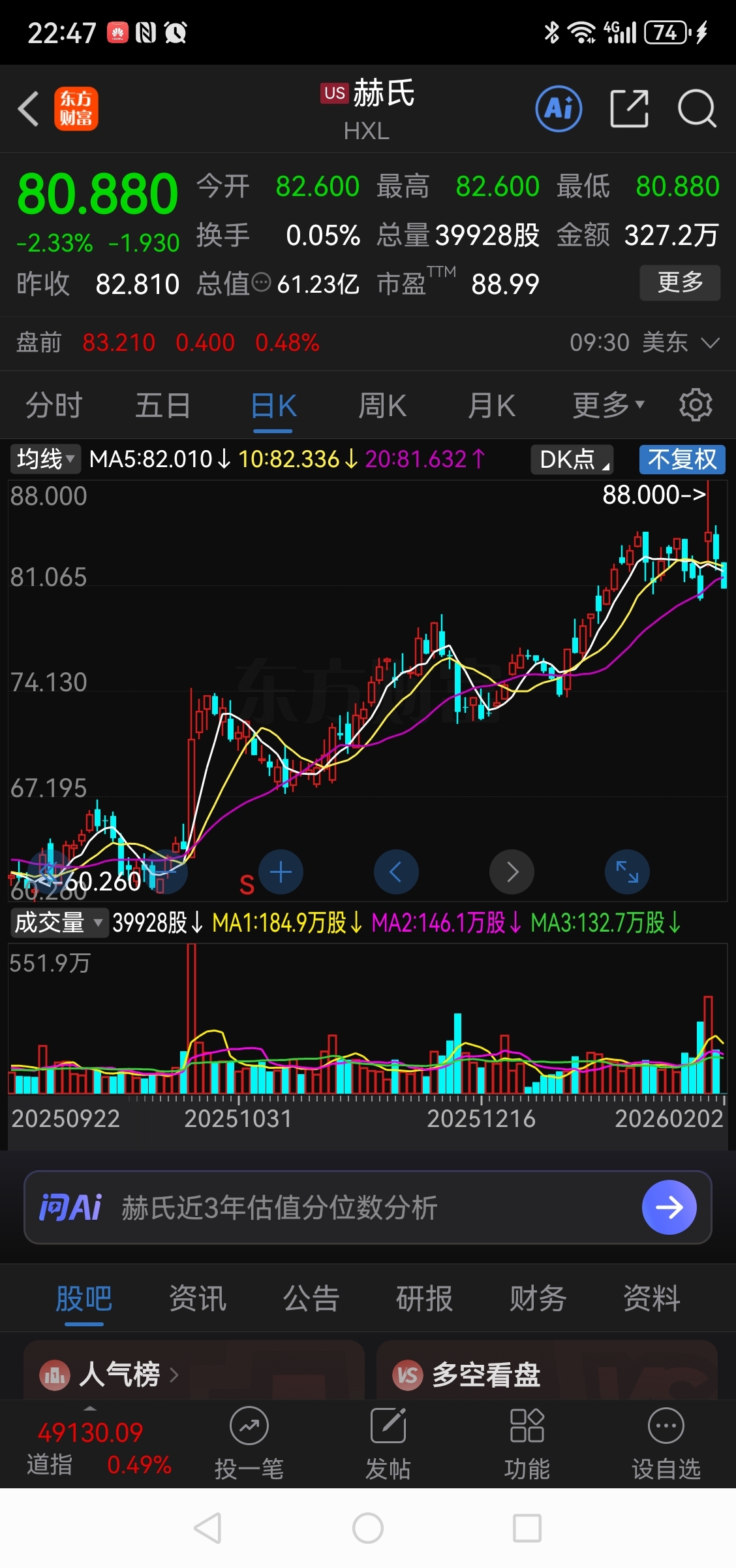 $中航高科(SH600862)$ 看看中航高科对表的美国公司的市盈率是多少?