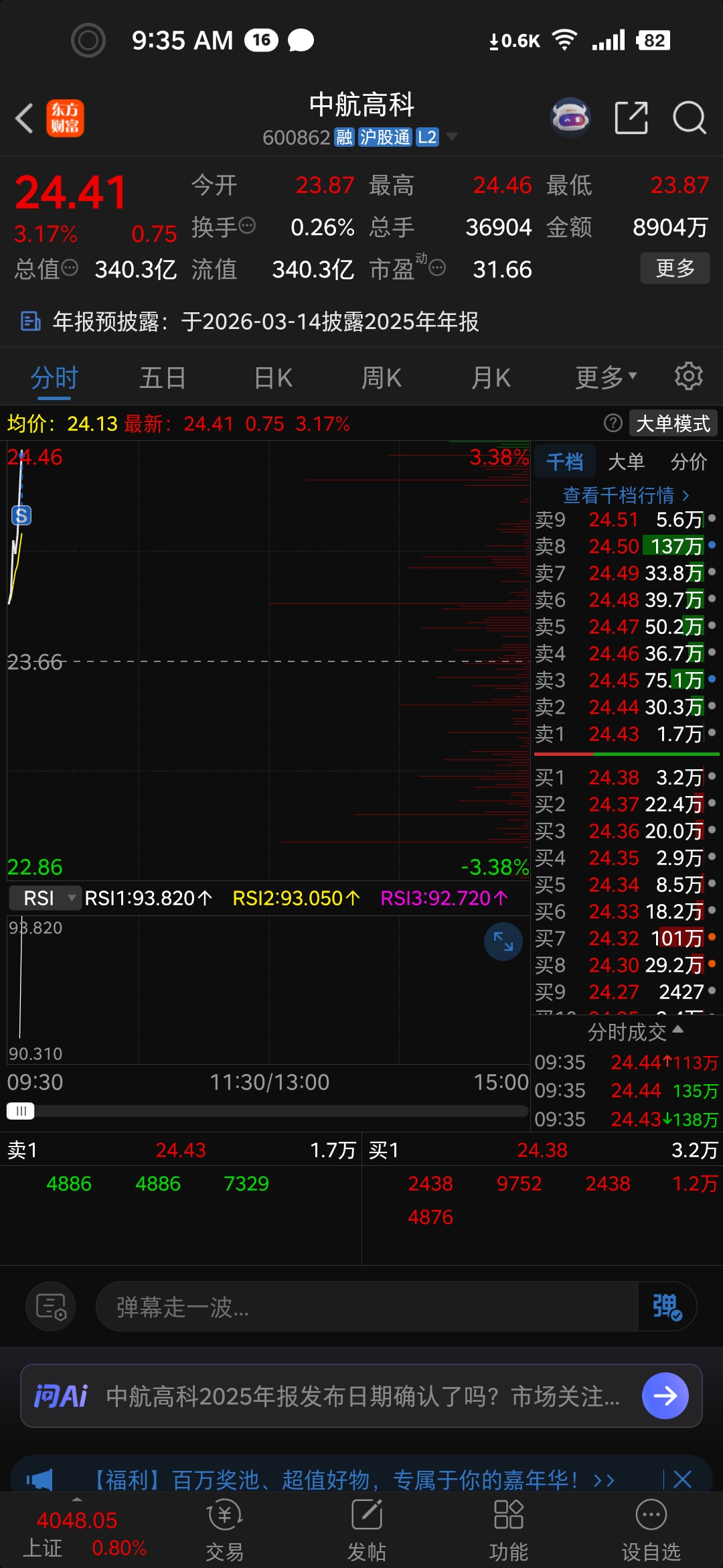 $中航高科(SH600862)$ 把昨天23.75的t出,都说砸到支撑位置了