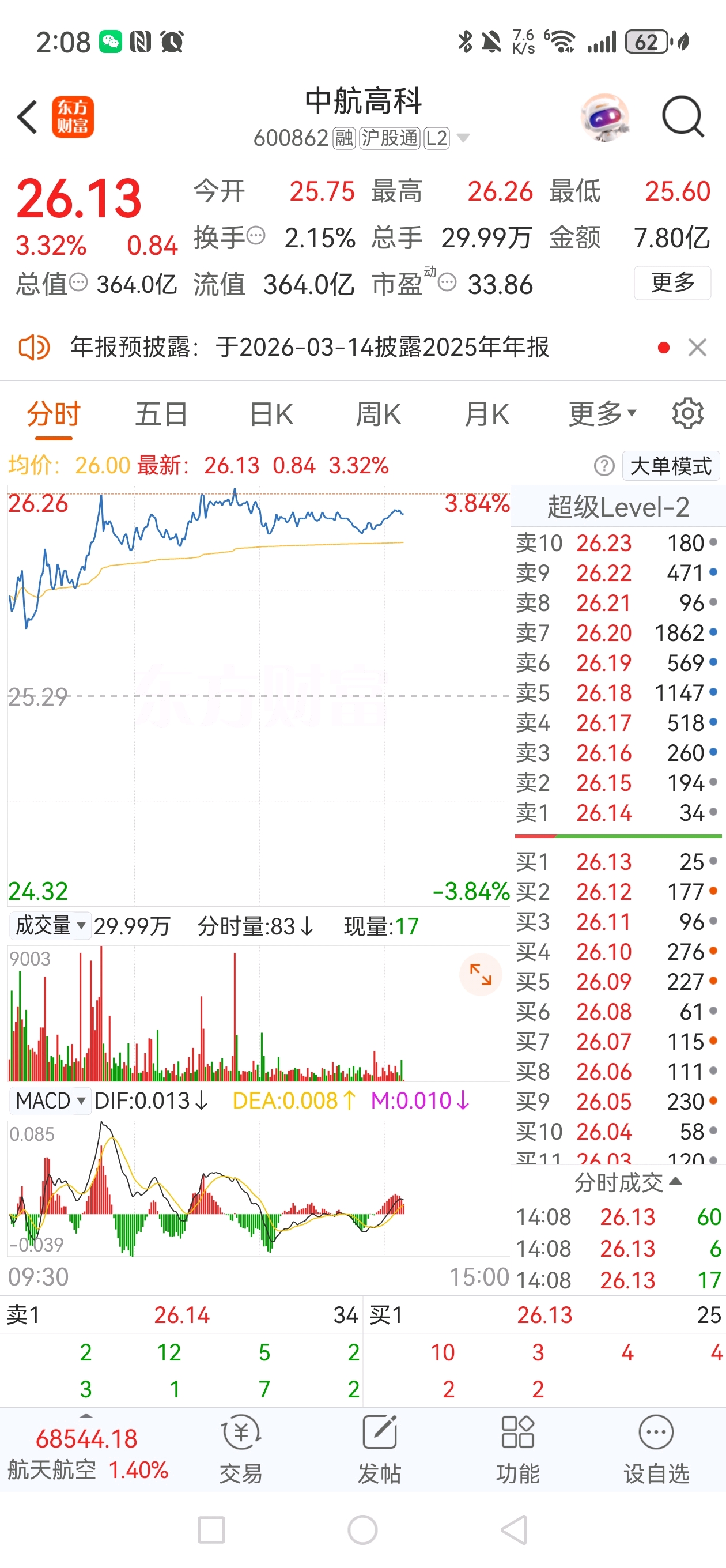 $中航高科(SH600862)$ 成本线压制