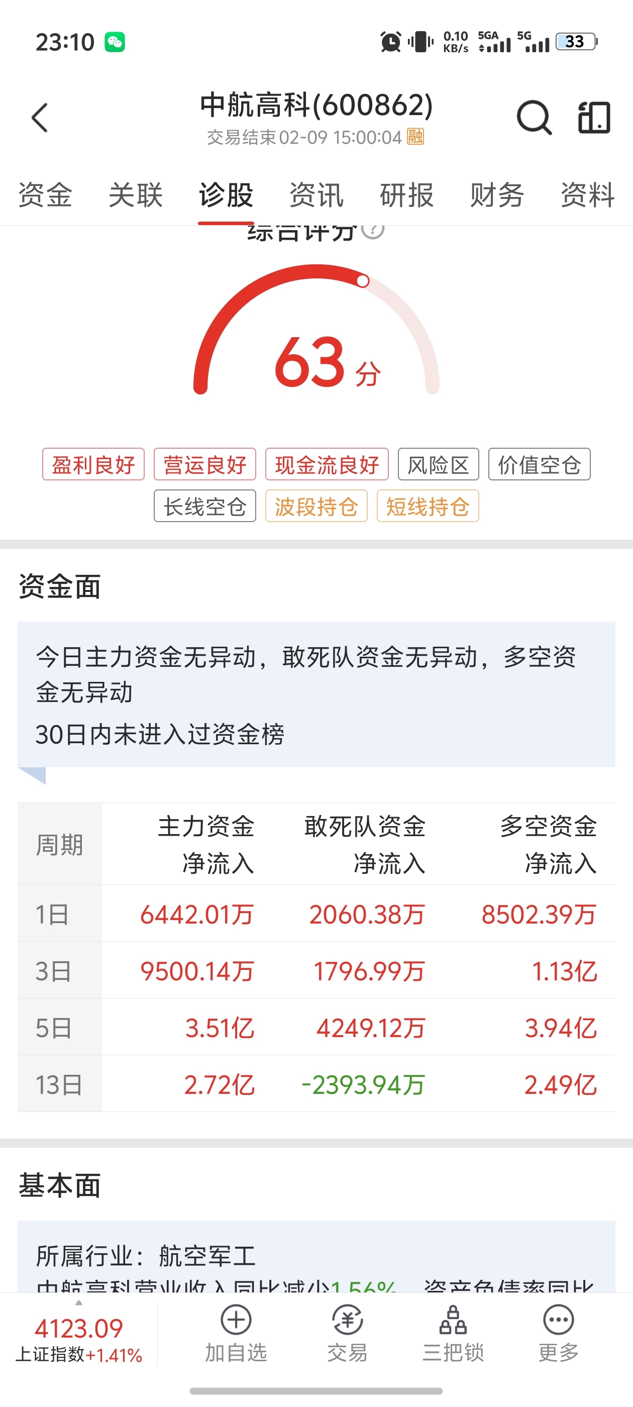 $中航高科(SH600862)$ 看五日资金应该没啥问题