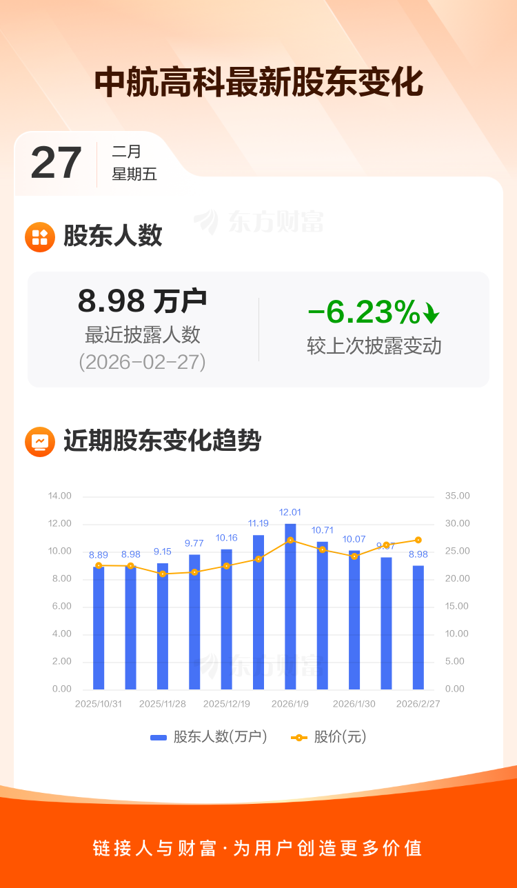 中航高科:截至2月27日最新股东户数8.98万户,较上期减少6.23%