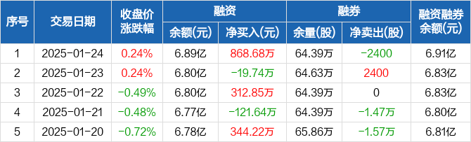 内蒙华电:融资净买入868.68万元,融资余额6.89亿元(01-24)
