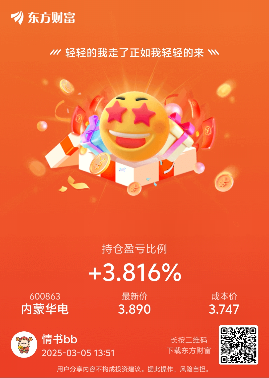 温馨提示: 1.根据《证券法》规定,禁止编造、传播虚假信息或者误导性信息,扰乱证券市场;2.用户在本社区发表的所有资料、言论等仅代表个人观点,与本网站立场无关,不对您构成任何投资建议。用户应基于自己的独立判断,自行决定证券投资并承担相应风险。《东方财富社区管理规定》