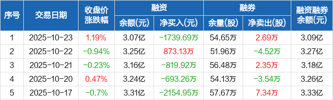 内蒙华电:融资余额3.07亿元,创近一年新低(10-23)