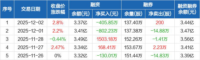 内蒙华电:融资净偿还405.85万元,融资余额3.37亿元(12-02)