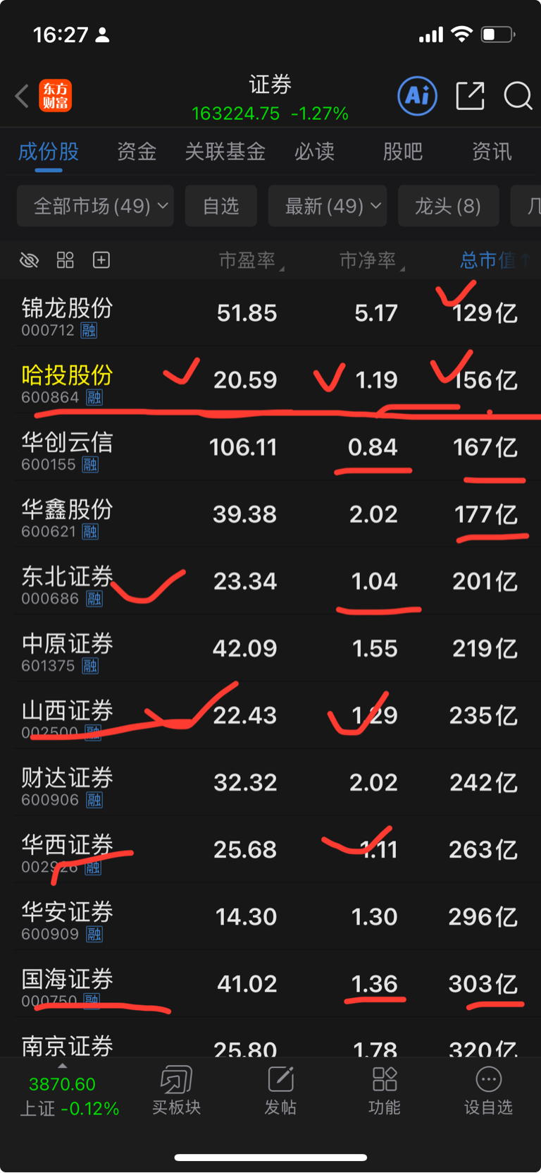 $哈投股份(SH600864)$ 【】中小券商股将持续爆发,现在券商业务影响力在于自营盘,大小券商没有区别,与股本没关系。但是股本小的券商业绩每股弹性足。这两天东莞证券公告第三季度与半年报业绩相当。