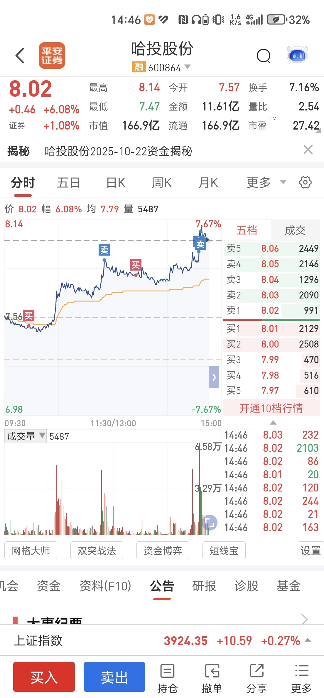 $哈投股份(SH600864)$ 今天赚一个板,明天给个涨停我就溜了。