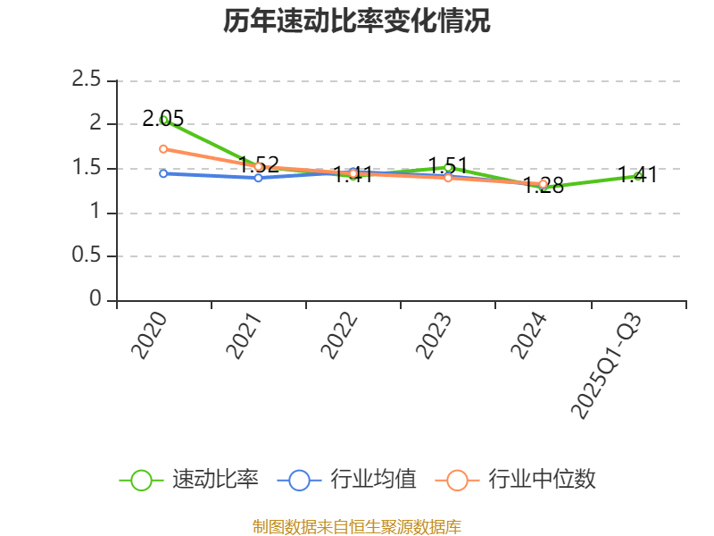 2025年前三季度,公司流动比率为1.42,速动比率为1.41。