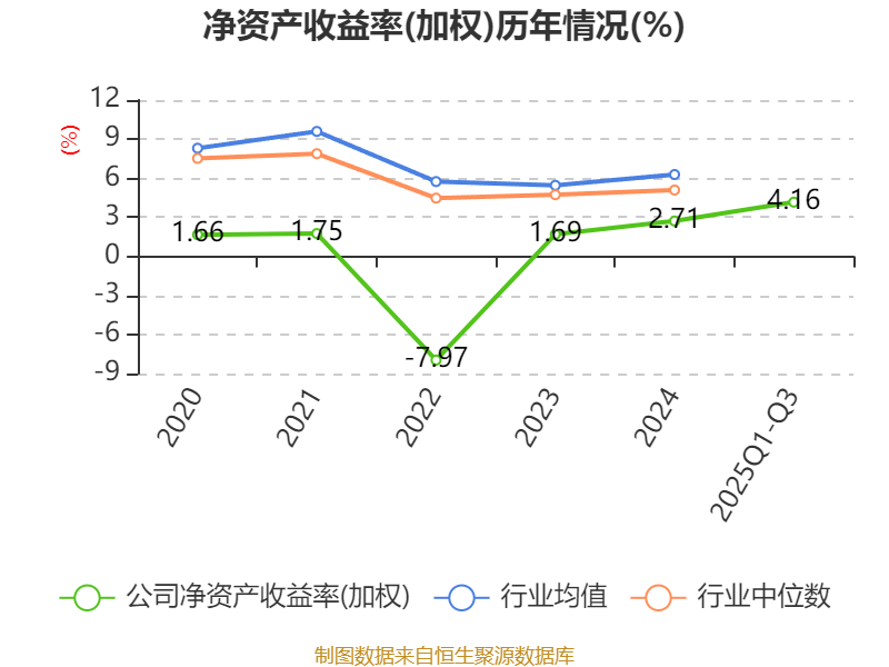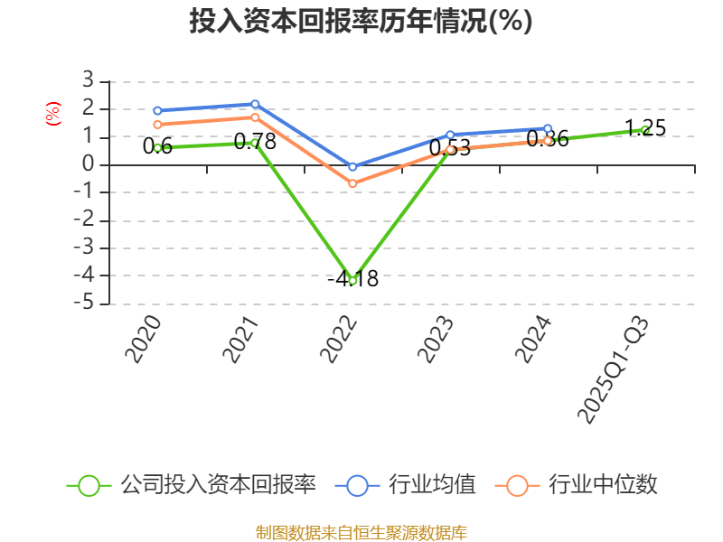 盈利能力方面, 2025年前三季度公司加权平均净资产收益率为4.16%,同比上升2.06个百分点。公司2025年前三季度投入资本回报率为1.25%,较上年同期上升0.59个百分点。