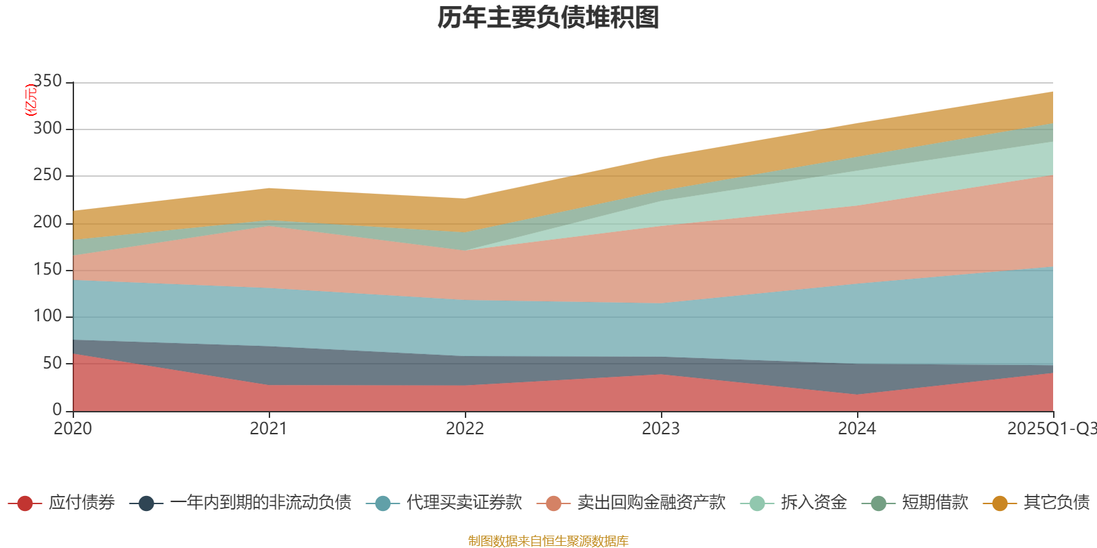 负债重大变化方面,截至2025年三季度末,公司一年内到期的非流动负债较上年末减少74.66%,占公司总资产比重下降5.75个百分点;应付债券较上年末增加130.58%,占公司总资产比重上升4.54个百分点;代理买卖证券款较上年末增加23.02%,占公司总资产比重上升2.63个百分点;卖出回购金融资产款较上年末增加17.45%,占公司总资产比重上升1.58个百分点。