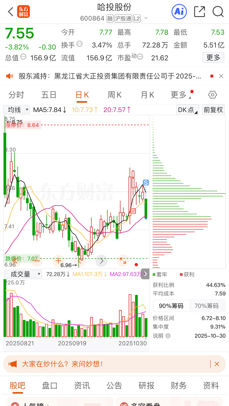 $哈投股份(SH600864)$ 卖了,你可以涨上来了,删自选,以后可以涨上天。