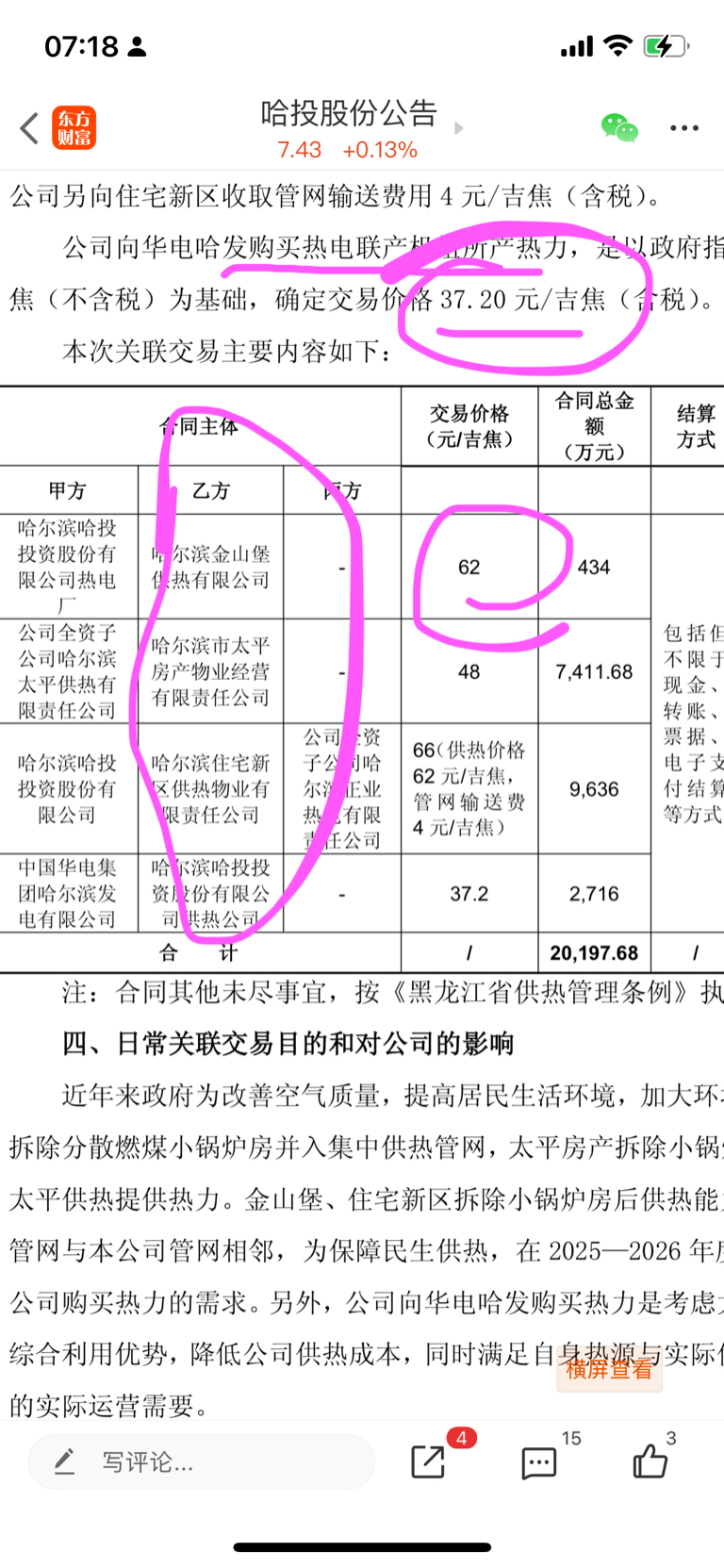 冬季冰雪经济(供热)哈投股份2亿合同金额,利润7000万元