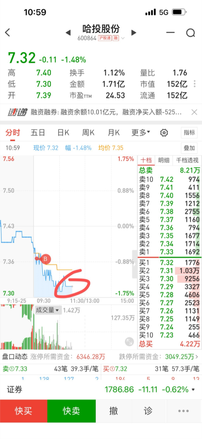 $哈投股份(SH600864)$ 真牛逼啊,15分钟股价没动过,心电图好歹有起伏,这个直接死了