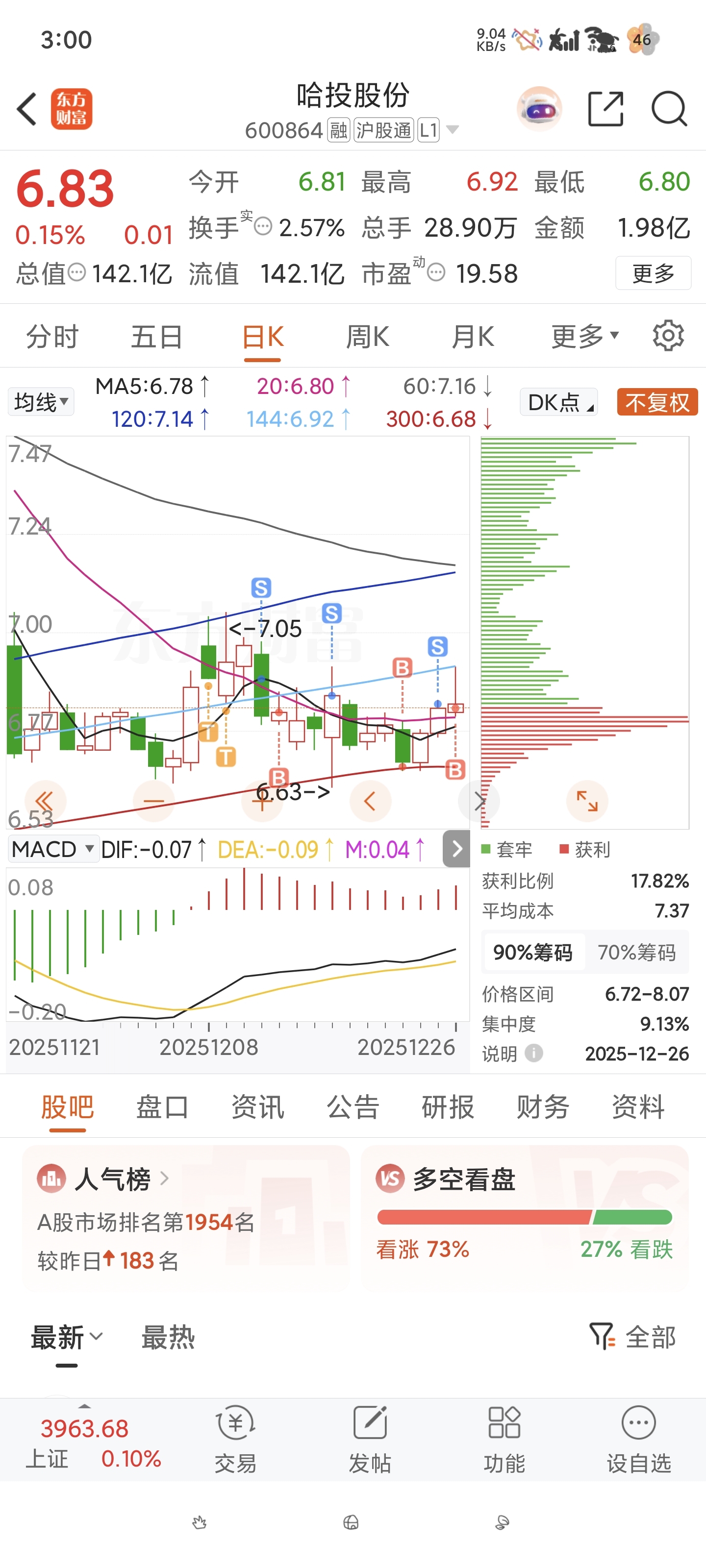哈投股份,量化属实恶心人,今天本来该跌的它非要硬拉,把早上冲高的给套了。下午又不