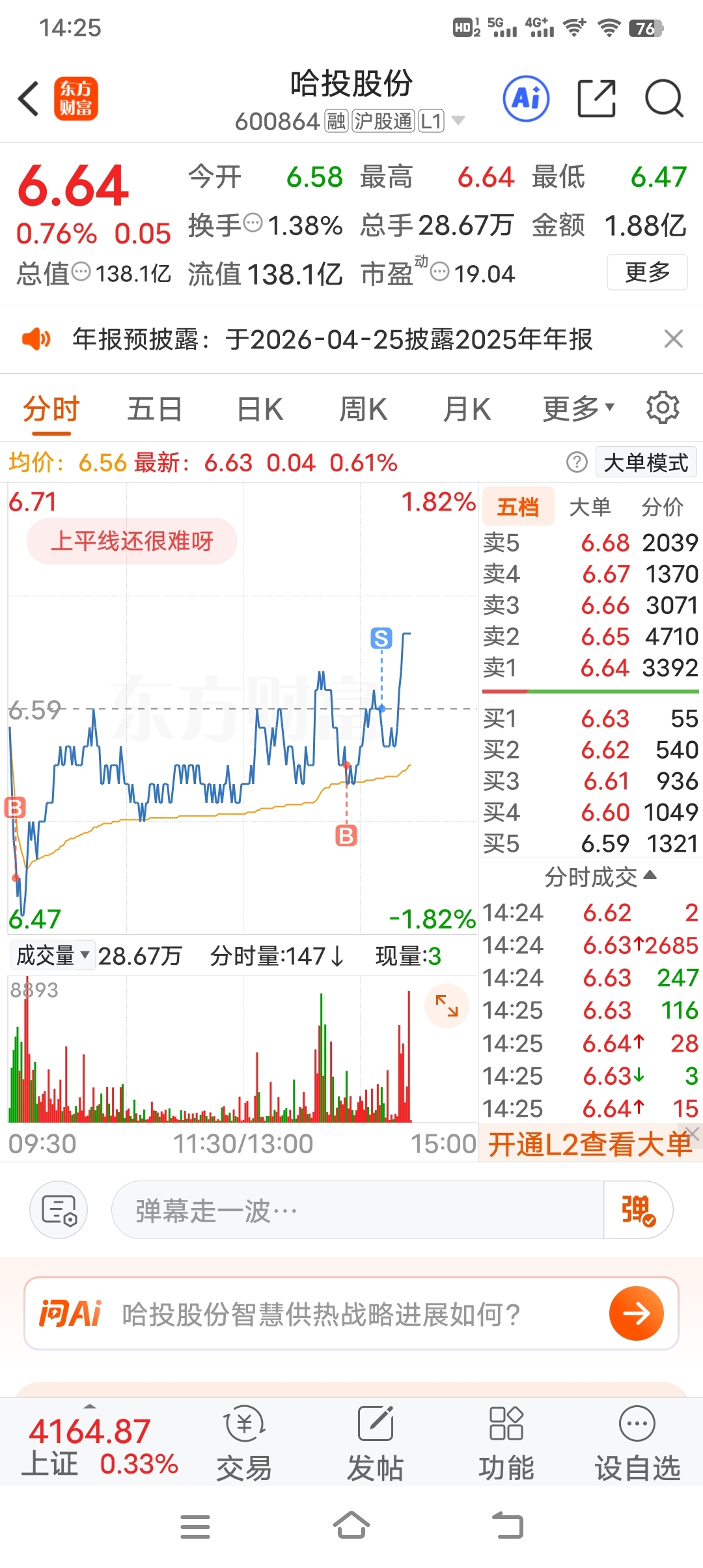 $哈投股份(SH600864)$ 卖飞了