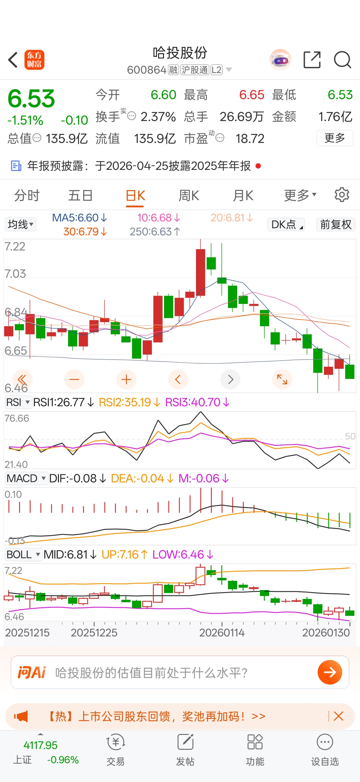 $哈投股份(SH600864)$ 这个金针探底是假的吗
