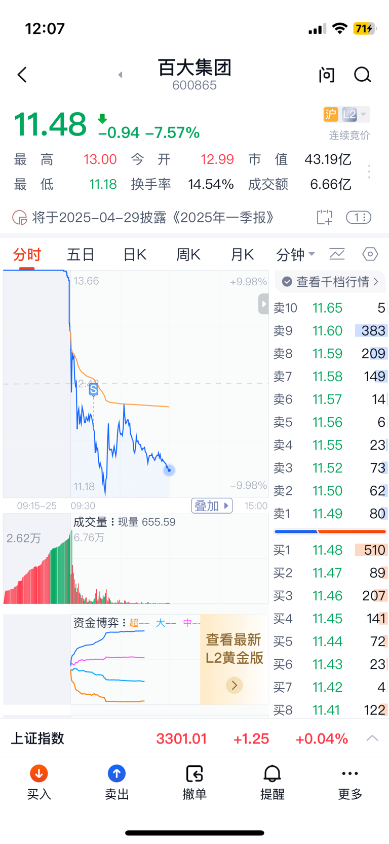 $百大集团(SH600865)$ 开盘看到零售不及预期,看到中位步步高还强挺着就贪了一下。于是就成这样了。不过呢,不幸中的万幸……