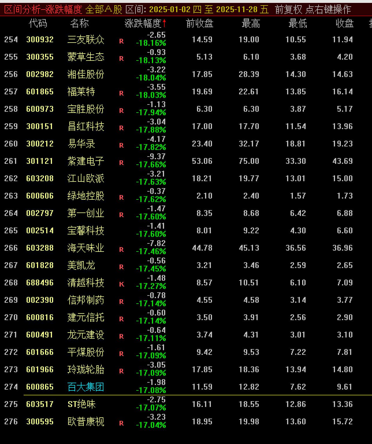 无话可说!百大集团2025年表现依然排名两市倒数,以年跌幅17.08%的极差表现排名两市倒数第274位,落后全A股(共5454家)95%上市公司!
