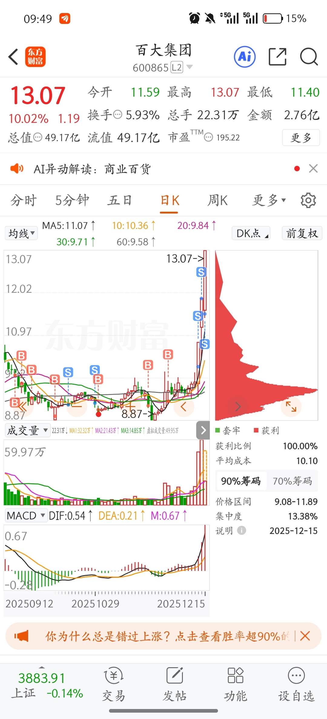 $百大集团(SH600865)$ 一顿操作下来就转了10个点