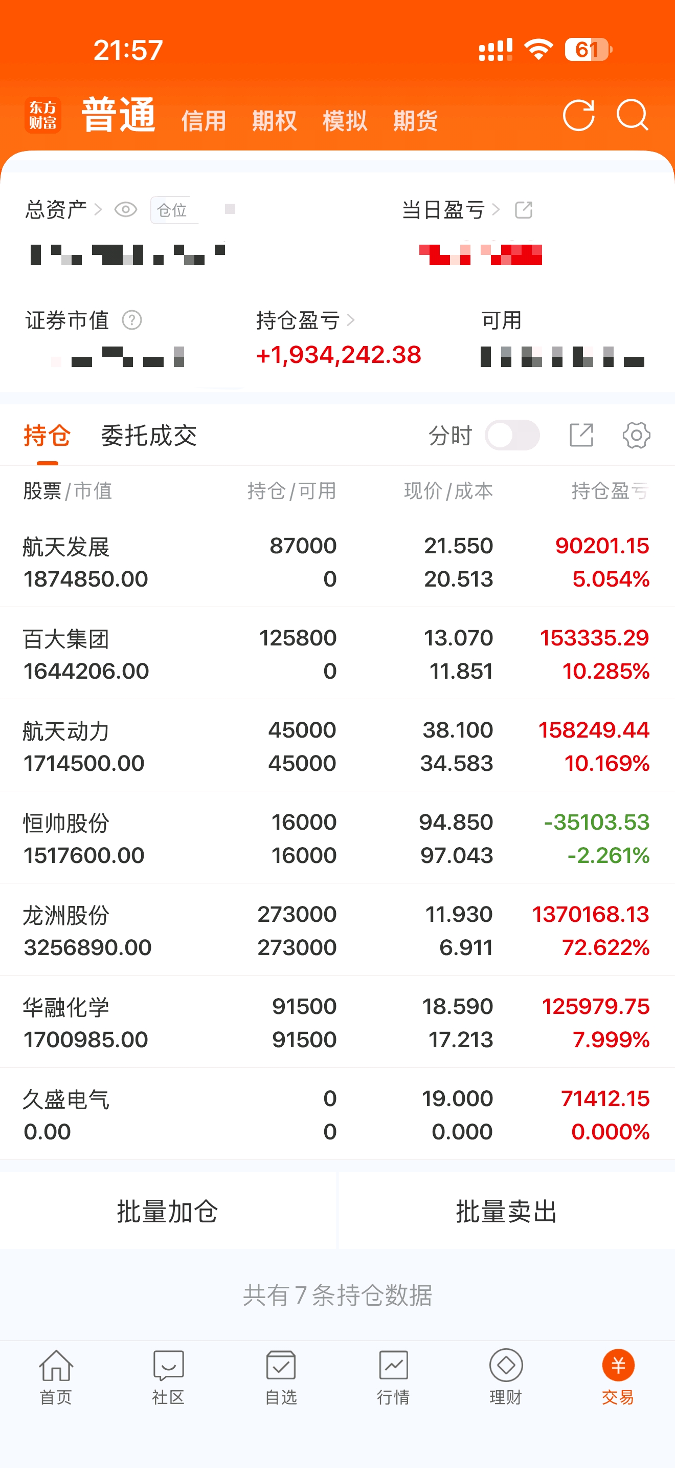 12.15各位股友们好,简单更新一下早盘新开仓介入,消费板块目前还在持有,盈利7
