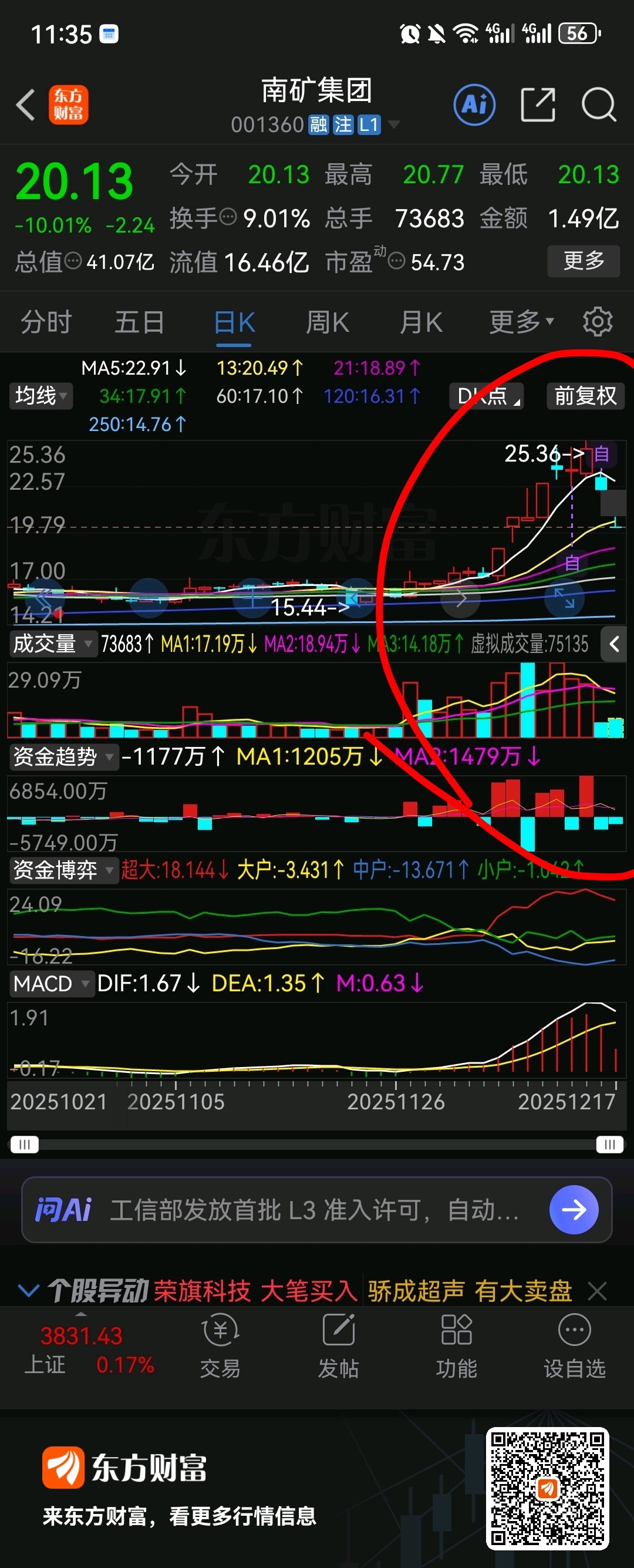 早盘由于603709中源家居002862龙洲股份001360南矿集团连续跌停打压