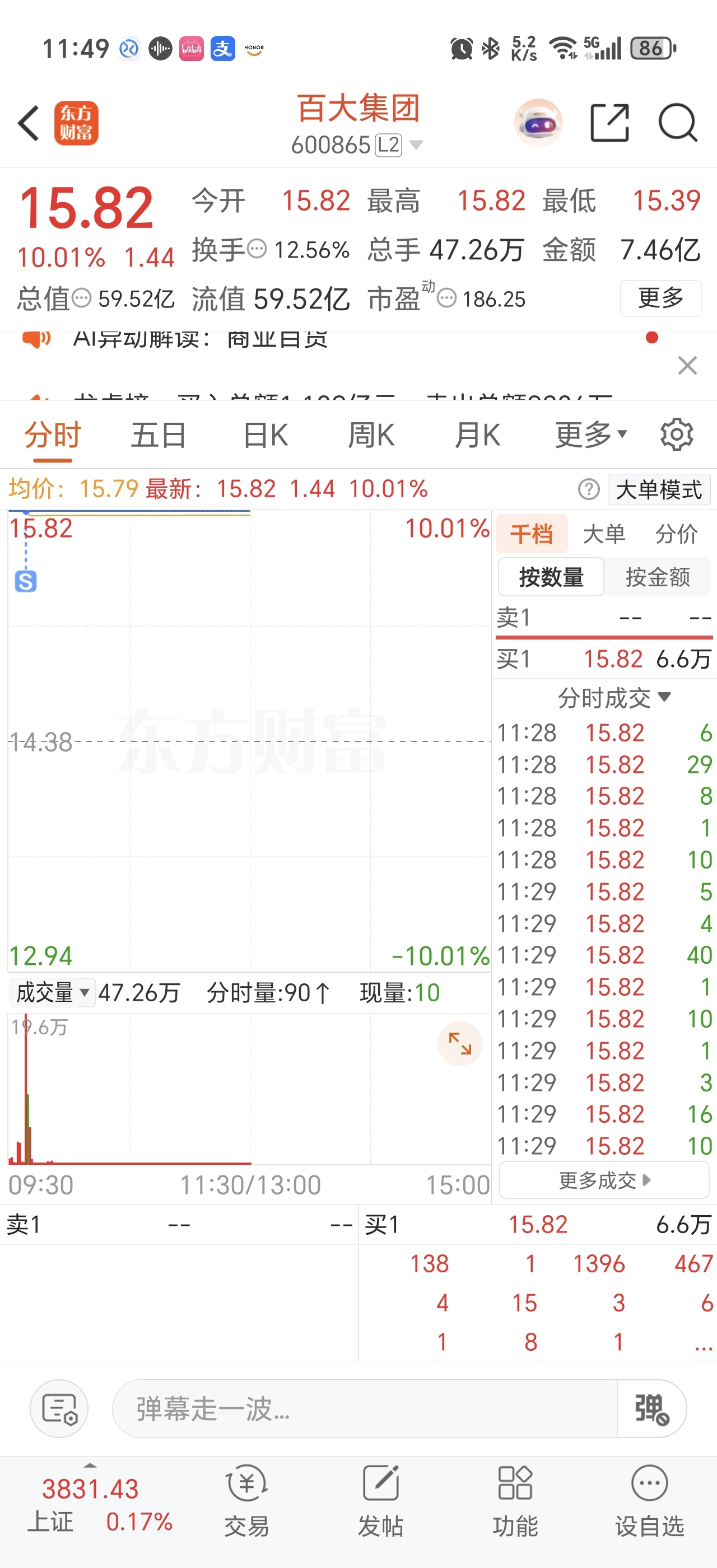 $百大集团(SH600865)$ 哎 早上被吓出去了