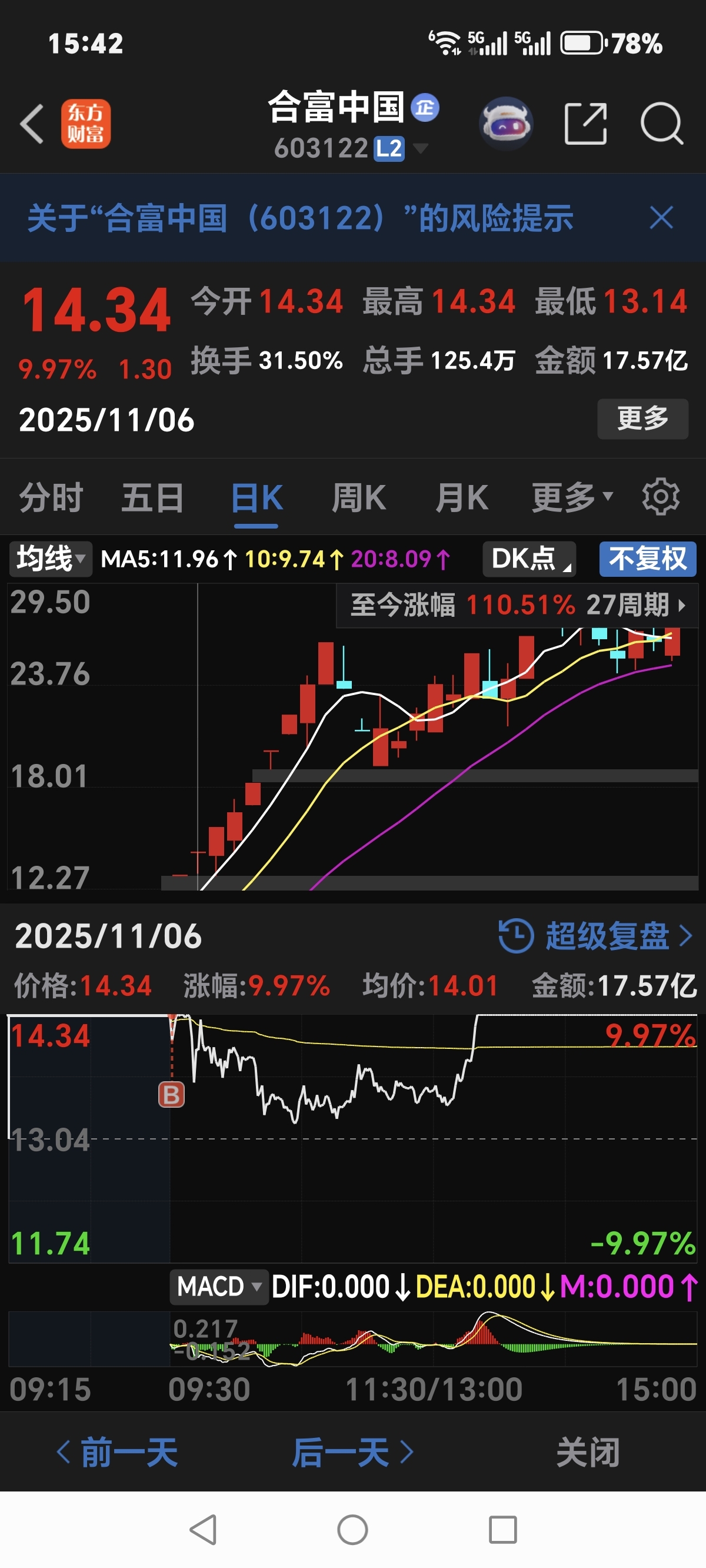 明天盯住,就是成妖的可能,合富中国当时也是这样的放量T字板。明天是渡劫日,利群股