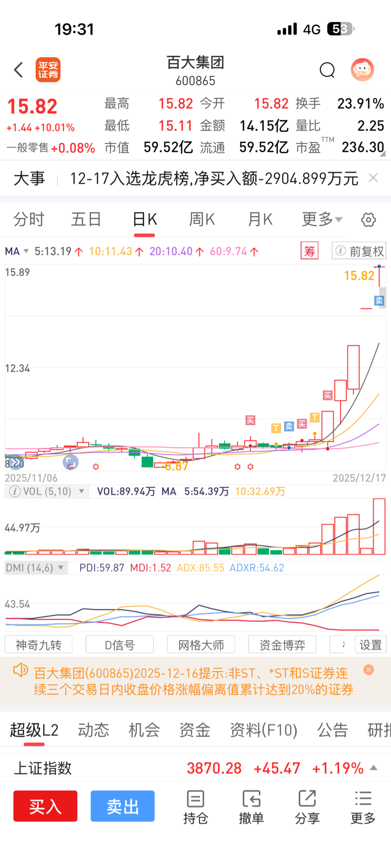 $百大集团(SH600865)$ 运气好吃了一波