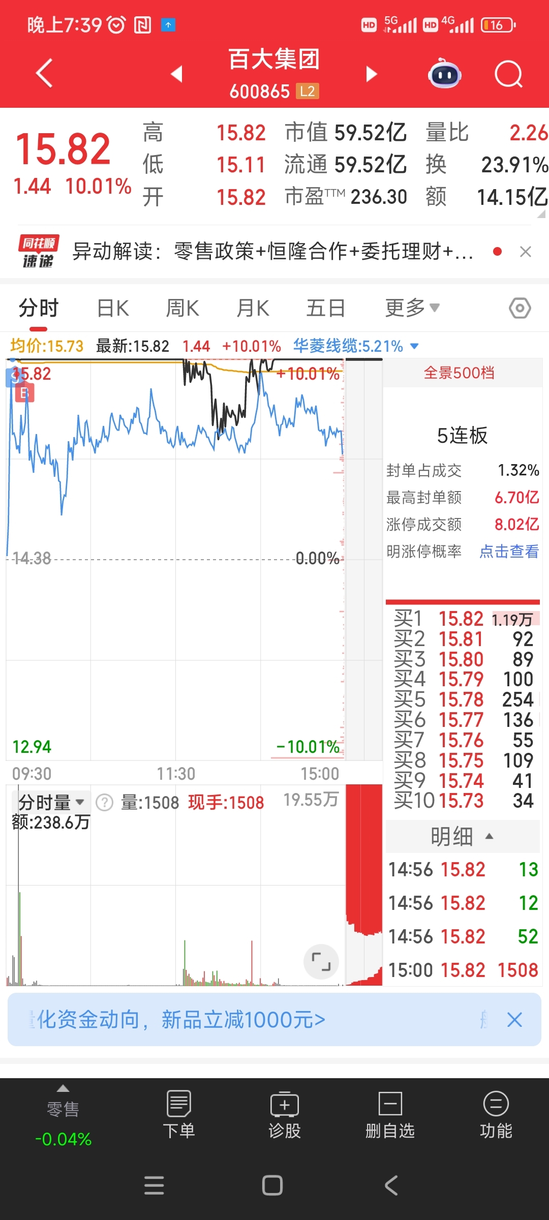 $百大集团(SH600865)$ 本来没预期了,结果被大盘推到了独立逻辑,希望走出来