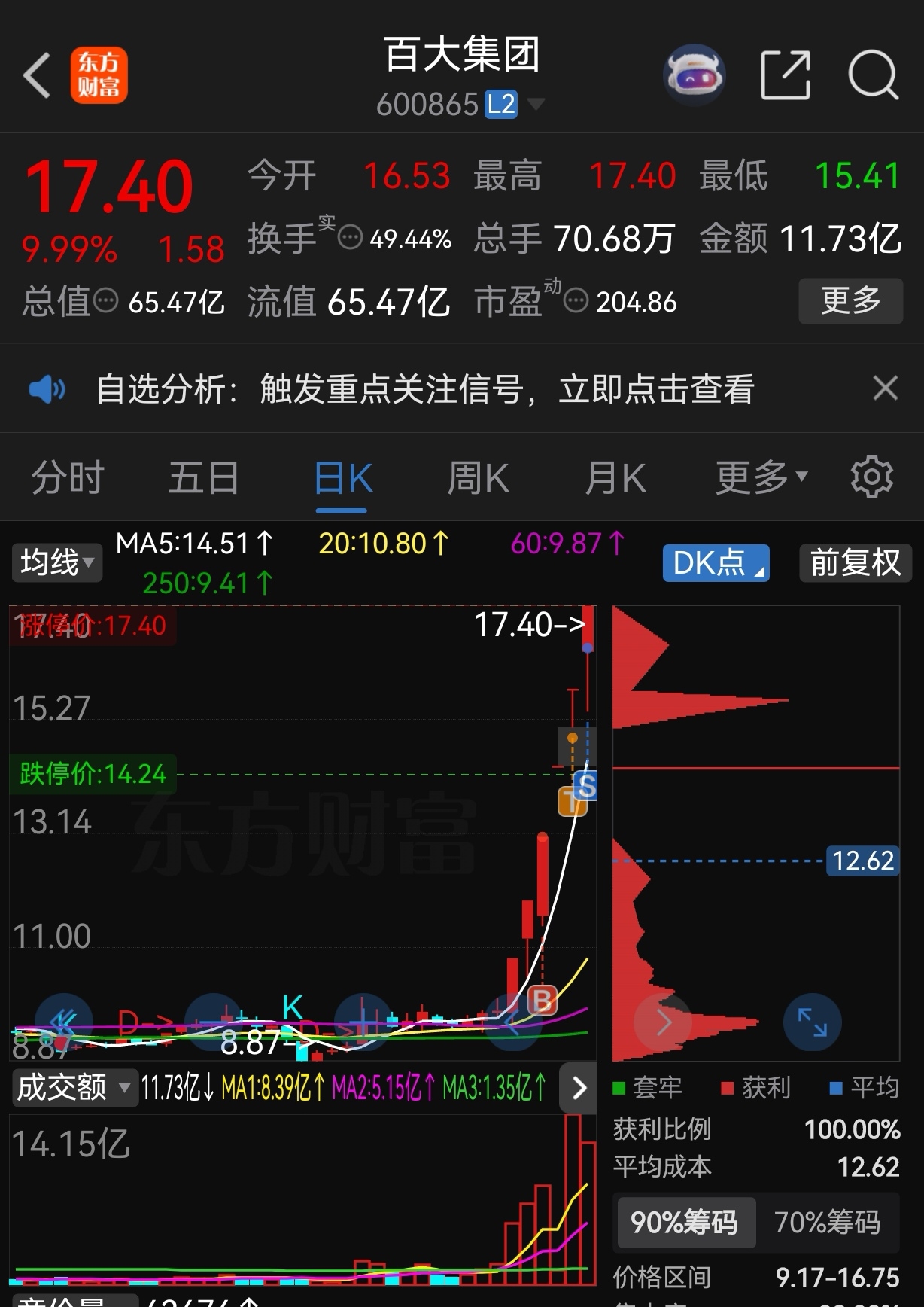 $百大集团(SH600865)$ 分手了还是祝福你过得好一点#炒股日记#