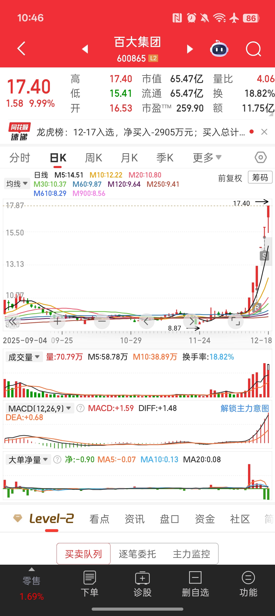 $百大集团(SH600865)$ 我是怂货配不上你,分手快乐,祝你干到九板,让你的下一任们都大赚特赚,拜