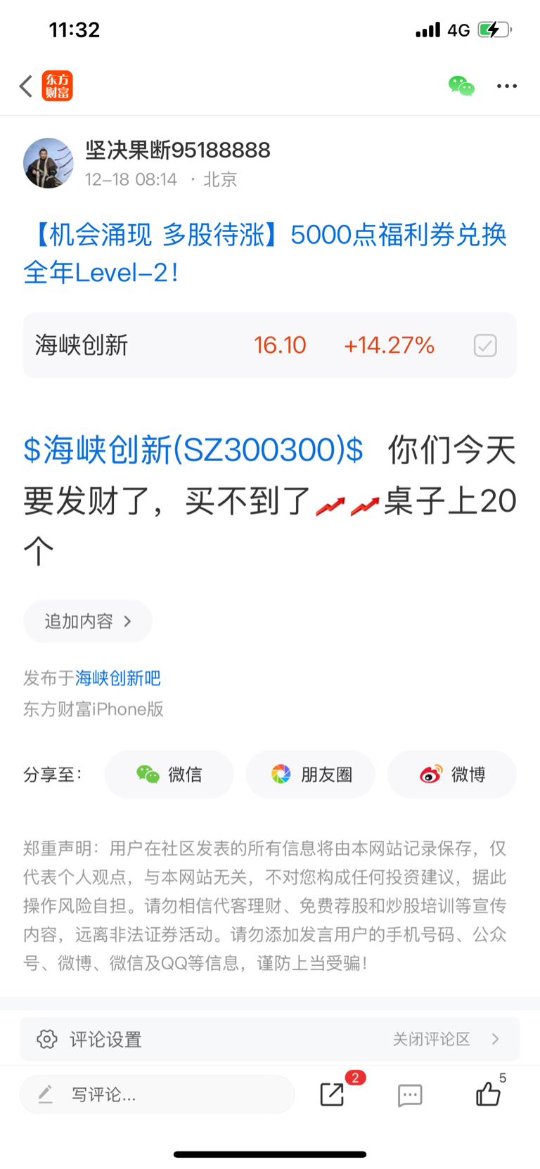 温馨提示: 1.根据《证券法》规定,禁止编造、传播虚假信息或者误导性信息,扰乱证券市场;2.用户在本社区发表的所有资料、言论等仅代表个人观点,与本网站立场无关,不对您构成任何投资建议。用户应基于自己的独立判断,自行决定证券投资并承担相应风险。《东方财富社区管理规定》