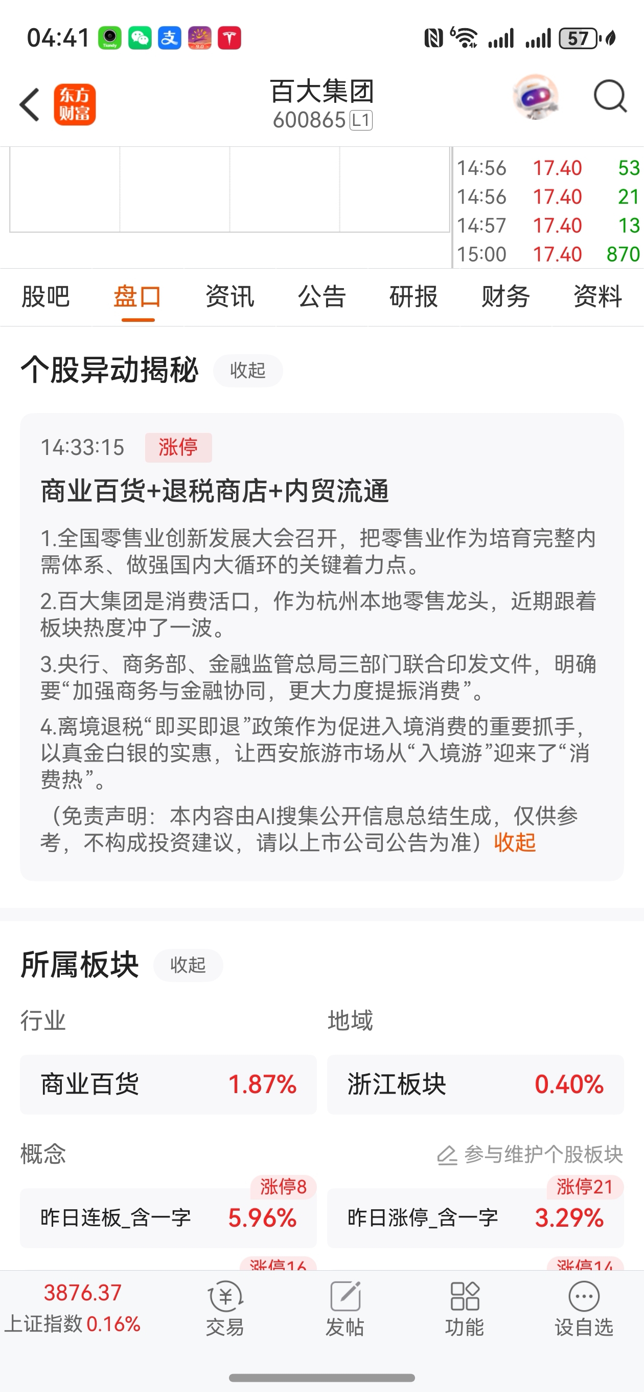 $百大集团(SH600865)$