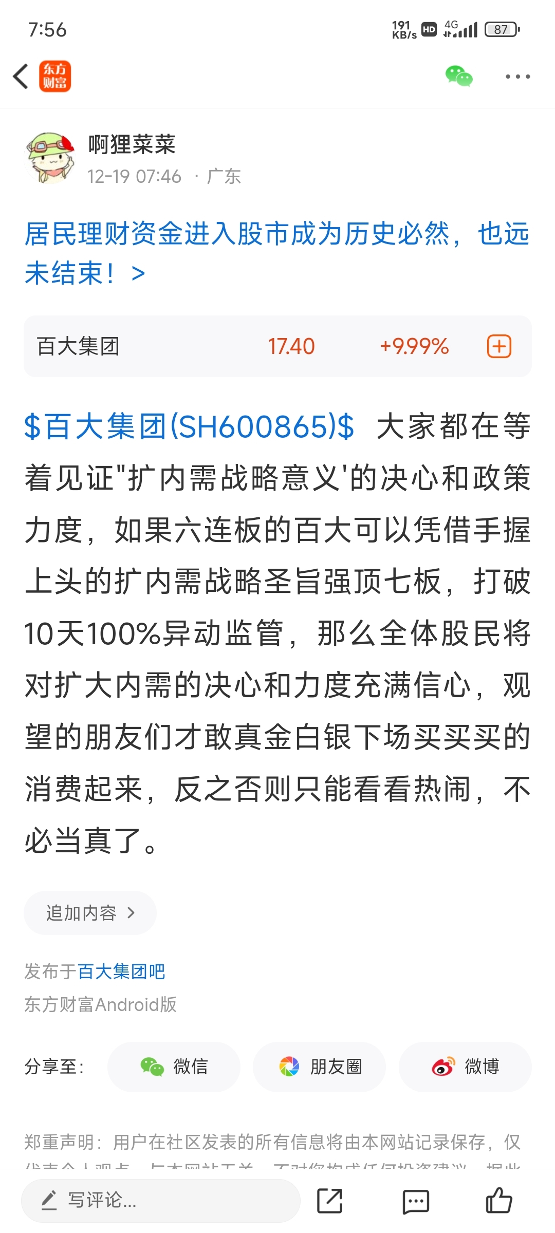 $百大集团(SH600865)$ 生死有命富贵在天