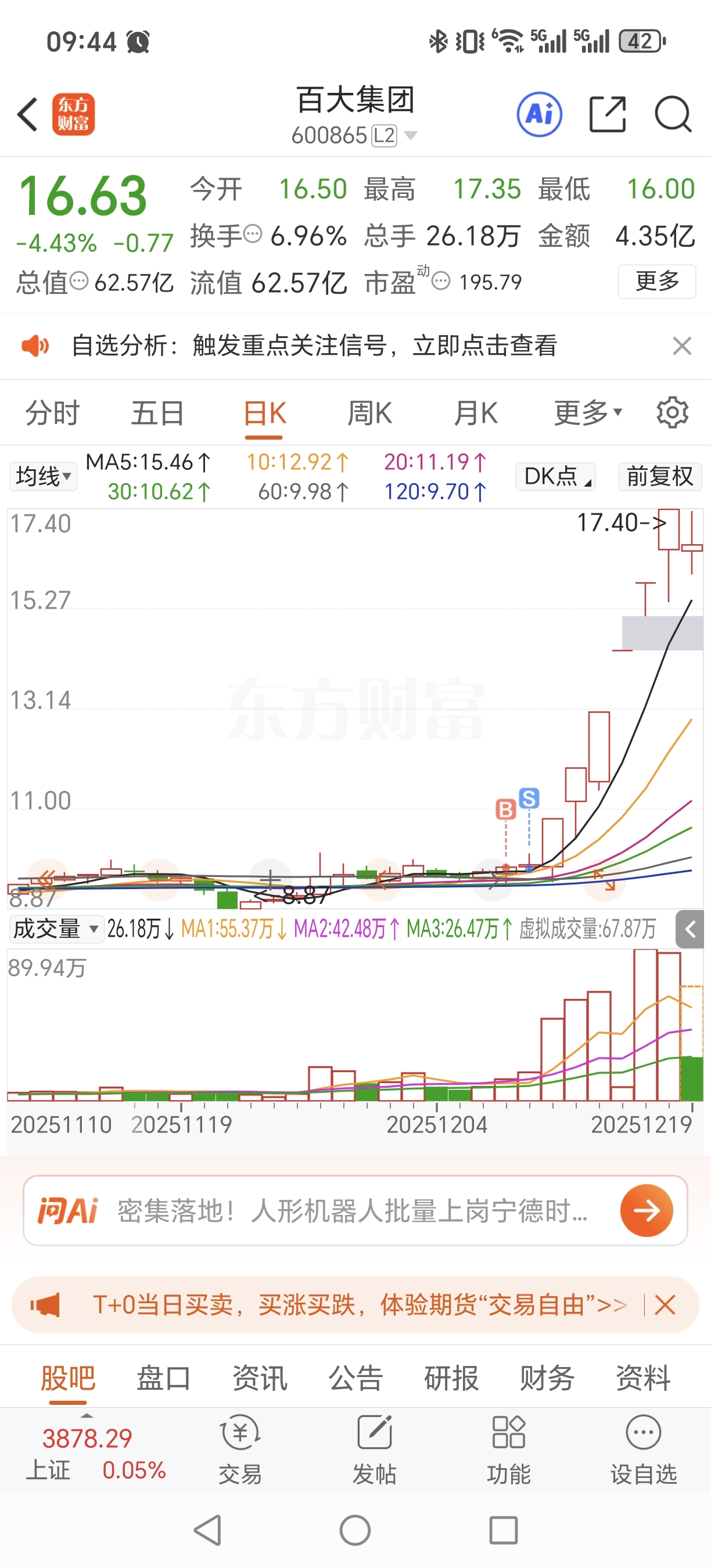 $百大集团(SH600865)$ 我给大伙来点乐子