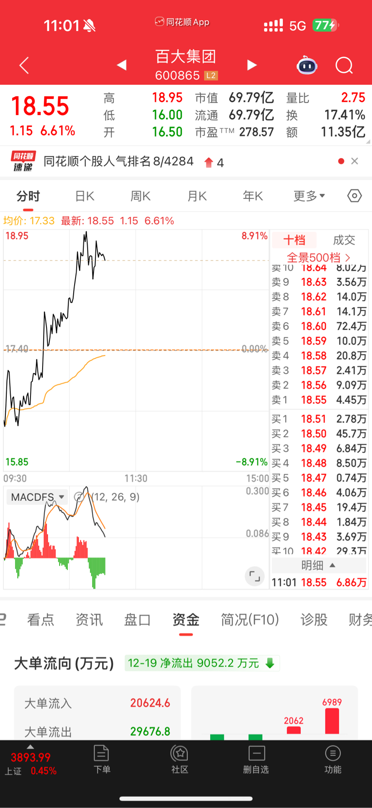 $百大集团(SH600865)$ 按理说今天零售这么强你应该快点上去板上换手 打开高度你才是大哥