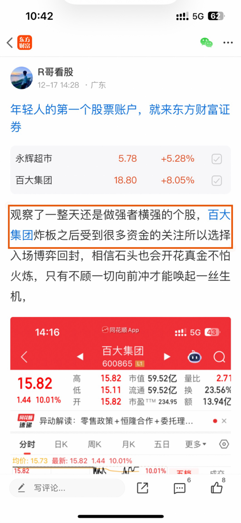 各位同学们中午好,我前天入场的百大集团前天打板成功,昨天再次涨停封板,今天早盘选