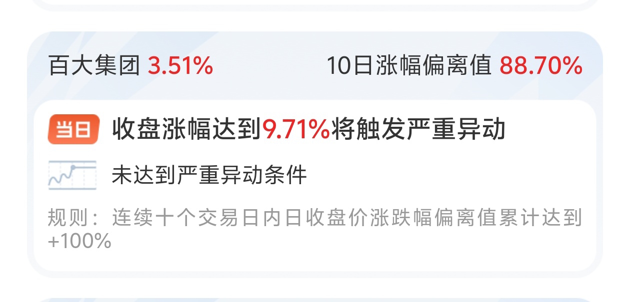 $百大集团(SH600865)$ 就知道天天涨,进监管就惨了